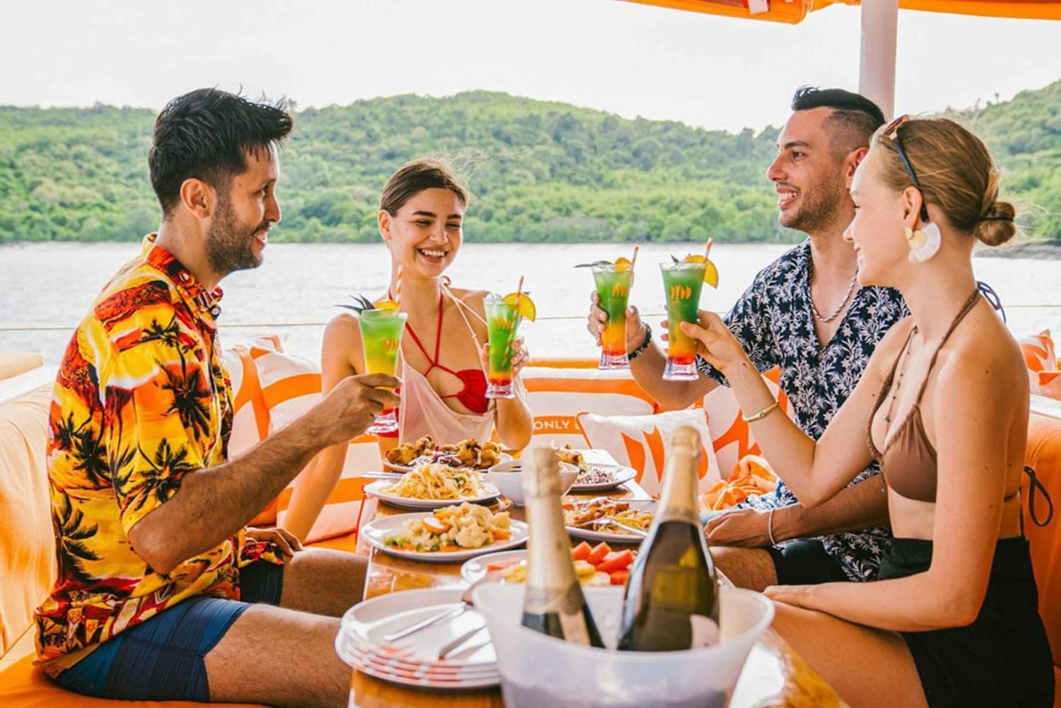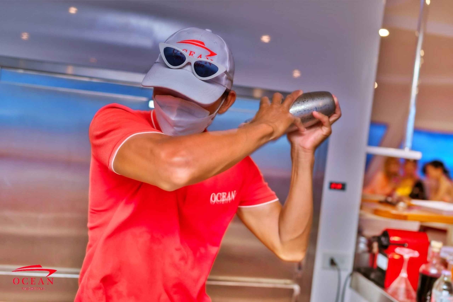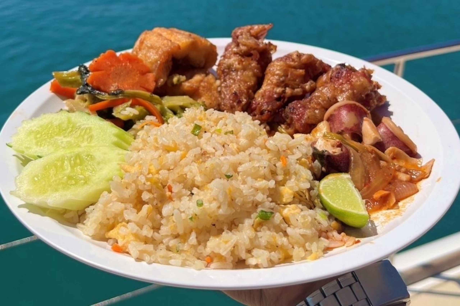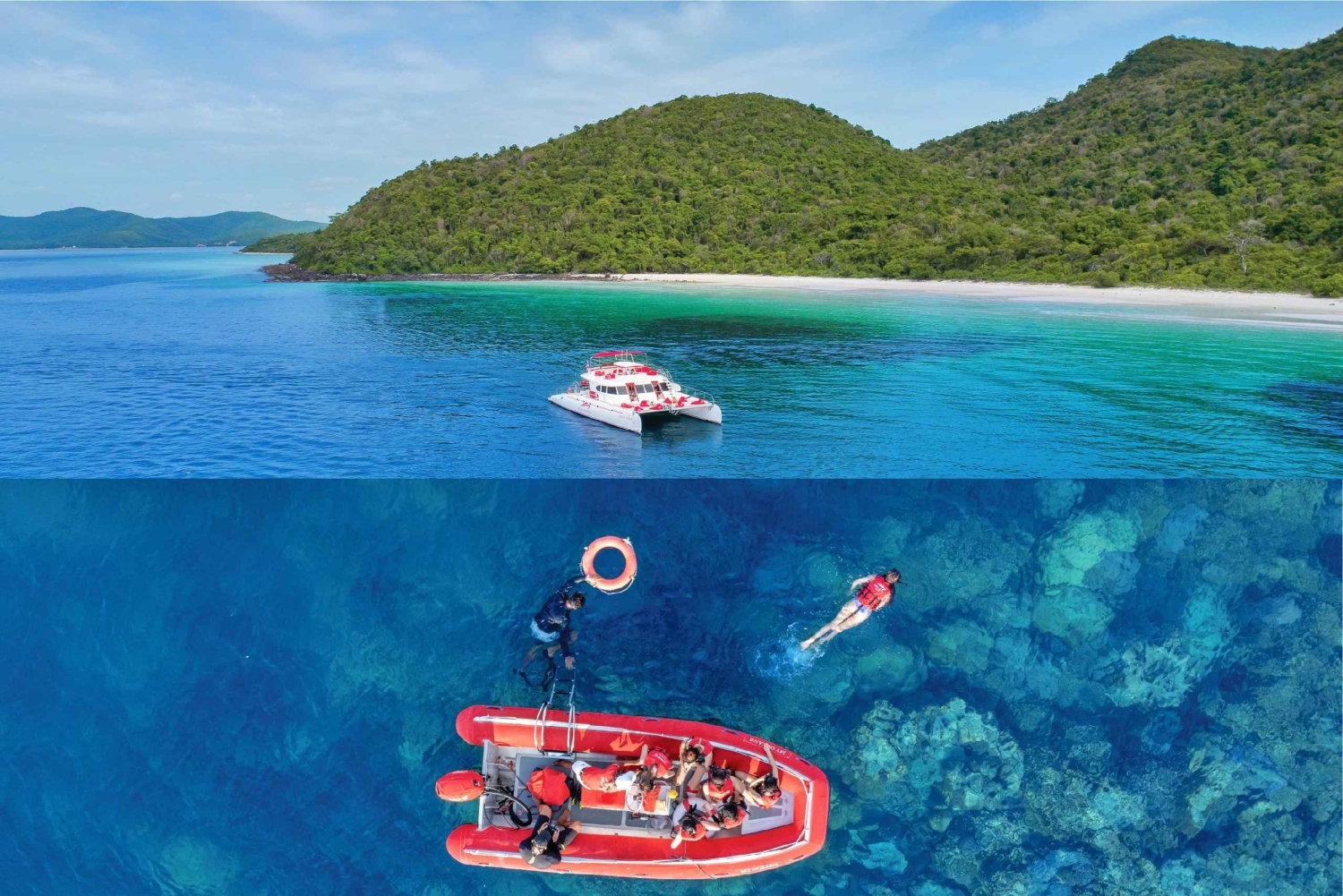 Vivez l'ultime circuit privé dans les îles à Pattaya avec une excursion d'une journée à bord d'un catamaran de luxe. Explorez les deux magnifiques îles de Koh Phai et Koh Rin, en vous immergeant dans la plongée avec tuba, la pêche sur le yacht, le paddle board et en descendant du flybridge avec le glisseur. Vous pouvez également vous rendre sur les plages où des parasols privés sont installés. Savourez un délicieux déjeuner buffet thaïlandais et profitez des équipements exceptionnels mis à votre disposition. Créez des souvenirs inoubliables lors de ce voyage d'une vie, guidé par un capitaine professionnel et un équipage expérimenté, et profitez d'une prise en charge et d'un retour à l'hôtel pratiques à Pattaya.
