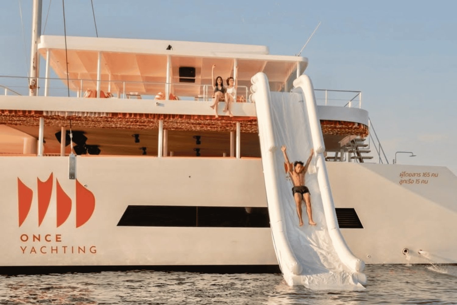 Luxe jachtcruise⧏BR/⧐Professionele bemanning en gids⧏BR/⧐Visuitrusting⧏BR/⧐Reddingsvesten⧏BR/⧐Snorkeluitrusting⧏BR/⧐Wateractiviteiten aan boord: waterslide, paddleboards, opblaasbare drijvers⧏BR/⧐Toiletten en douches met zoet water aan boord Welkomstdrankje⧏BR/⧐Thais fusion-lunchbuffet en seizoensfruit aan boord⧏BR/⧐Drinkwater en frisdranken⧏BR/⧐Toegangsprijzen voor het eiland⧏BR/⧐Professionele fotograaf⧏BR/⧐Zonsondergangfeest met een DJImportant Information