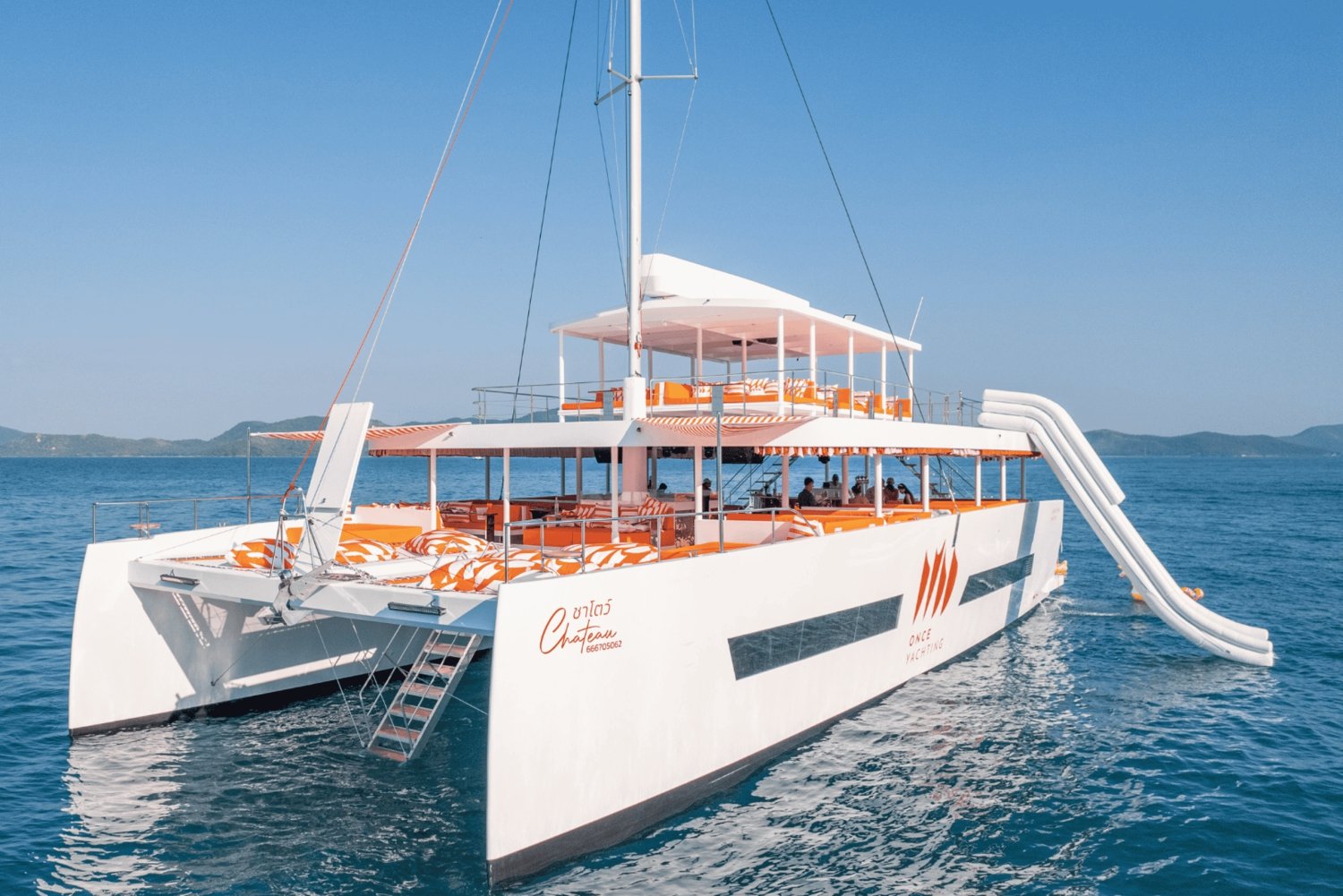 Stap aan boord van de luxueuze 82 voet lange catamaran 'Château', ontworpen voor maximaal 150 gasten en voorzien van eersteklas voorzieningen en service. Maak je klaar voor een spannend eilandhoppen-avontuur van een hele dag vanuit Pattaya, terwijl je naar de adembenemende kusten van Koh Phai, Koh Rin en Monkey Island vaart. Geniet van een heerlijke Thaise fusion-lunchbuffet, proef vers tropisch fruit en drink onbeperkt alcoholvrije drankjes tijdens je reis (er is ook een selectie alcoholische dranken te koop). De professionele bemanning en de fotograaf aan boord doen er alles aan om je dag vlekkeloos, leuk en echt onvergetelijk te maken. Als de zon ondergaat, bereikt de opwinding zijn hoogtepunt met het spectaculaire 'Sunset Party'. Geniet van de gouden gloed terwijl de lucht verandert, dans op opzwepende DJ-beats onder levendige lichten en proef de ultieme sfeer van een strandfeest. Vier het met vrienden en creëer magische herinneringen tijdens deze buitengewone avond op zee.Includes