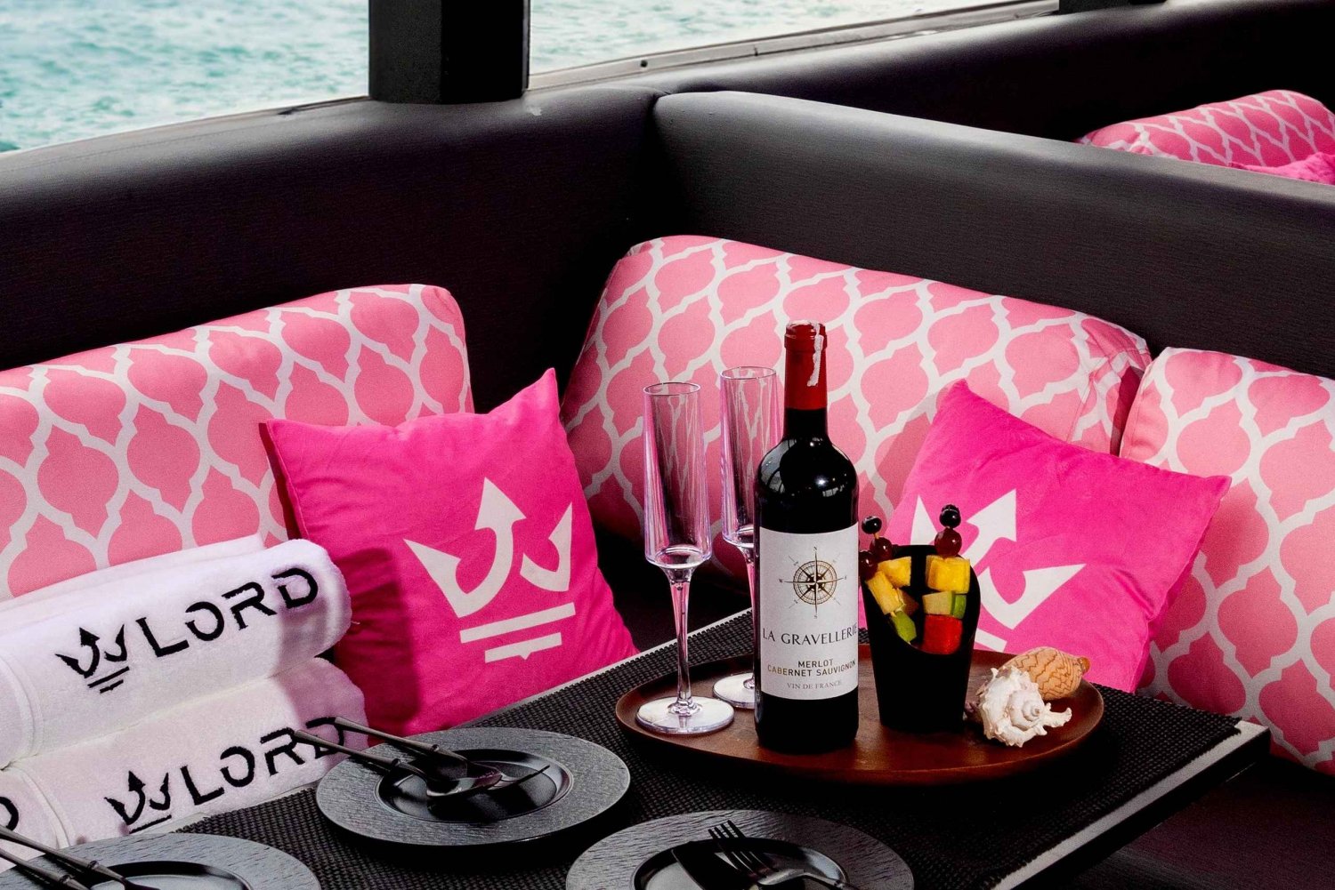 Ga mee met de Lord Yacht Club op de Lord Black Pearl voor een spannend avontuur met piratenthema dat klassieke charme combineert met moderne luxe. Deze cruise biedt een prachtig uitzicht op de oceaan en een kans om piratenlegendes op open zee te beleven. Begin met een handige ophaalservice vanaf hotels in de omgeving van Pattaya om 11:30 uur, gevolgd door een ontmoeting bij de pier om 12:30 uur. Vertrek om 13:00 uur en geniet van een heerlijke afternoon tea op weg naar Koh Larn, bekend om zijn prachtige stranden en verborgen plekjes die perfect zijn om te ontspannen. Bij aankomst op Koh Larn rond 14:00 uur kun je je storten op activiteiten zoals vissen, bananenboot varen, snorkelen en kajakken. Geniet van de natuurlijke schoonheid van Tien Beach, Samae Beach of Nual Beach, met opties voor ligbedden, privébedden en VIP-kamers aan boord. Keer om 16:30 uur terug naar de Balihai Pier of Ocean Marina en de tour eindigt om 17:30 uur. Tijdens de hele reis zorgen professionele bemanningen voor een veilige en gedenkwaardige ervaring, met gratis versnaperingen.Includes