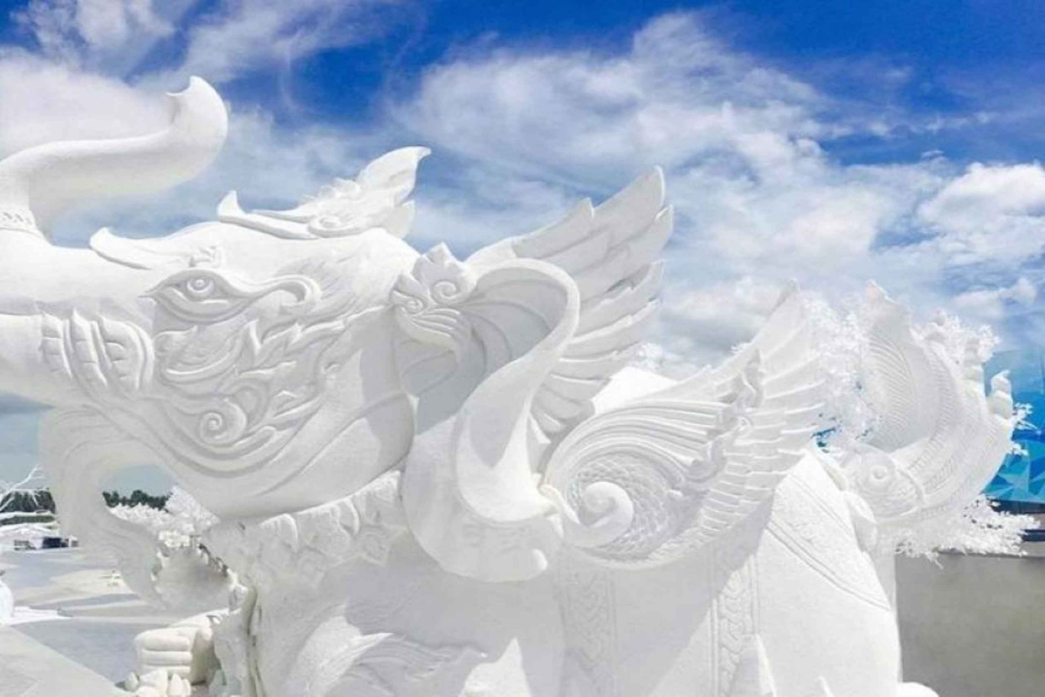 Stap in een wereld van ijs, creativiteit en Thaise mythologie bij Frost Magical Ice of Siam, een van de meest unieke attracties van Pattaya. Verken een indrukwekkend, op de winter geïnspireerd park van 30.000 m² vol reusachtige sculpturen, themazones en een spectaculaire ijskoepel die op -10°C wordt gehouden. Van mythische wezens tot fantasietafereelen uitgehouwen uit ijs en zand, elke hoek biedt een nieuwe ervaring die je nergens anders in Thailand. Wandel door prachtig ontworpen gebieden met Thaise legendes en fantasierijke kunstwerken. Wandel door het Himmapan-bos en wandel tussen zandsculpturen van mystieke dieren en magische planten, geïnspireerd door de oude folklore van Thailand. Bezoek de Siam Heaven Ice Dome, het hoogtepunt van het park met de grootste indoor collectie ijssculpturen van ASEAN, die gloeien in kleurrijke LED-lampen bij een ijzige temperatuur van -10°C. Voel de spanning van het glijden van een ijsglijbaan in de koepel. Bezoek de Ice Bar, waar drankjes worden geserveerd in een ijzige omgeving. Maak prachtige foto's op elke hoek — van mythische wezens tot speelse personages.Includes