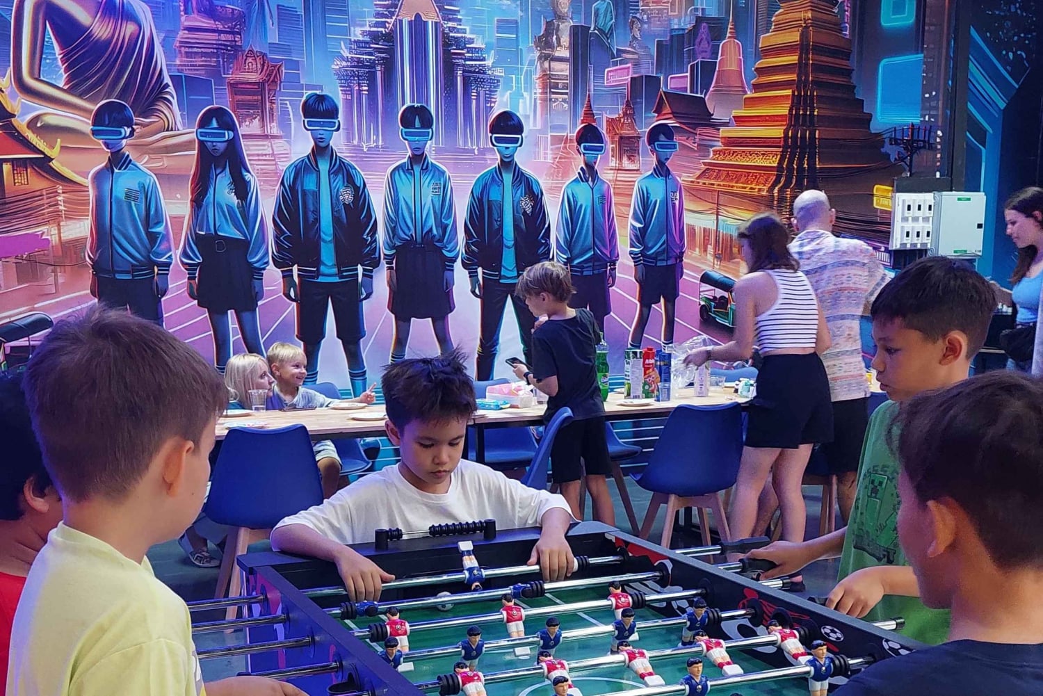 Wkrocz do świata zabawy w wirtualnej rzeczywistości! 🎮✨ Wzywamy wszystkich rodziców i poszukiwaczy mocnych wrażeń! Uwolnij magię VR dzięki naszym wciągającym grom, które przeniosą Ciebie i Twoje dziecko w nowy wymiar emocji. 👾🚀 Organizuj niezapomniane przyjęcia urodzinowe: Wznieś urodziny swojego dziecka na nowy poziom, organizując przyjęcie urodzinowe w technologii VR! Obserwuj, jak solenizant lub solenizantka i ich przyjaciele wyruszają na wirtualne misje, bitwy i przygody, które sprawią, że będą opowiadać o przyjęciu przez wiele tygodni. Wiele pakietów urodzinowych: Wybierz spośród naszych konfigurowalnych pakietów urodzinowych, które obejmują gry VR, dekoracje imprezowe i pyszne smakołyki. Pozwól nam zająć się planowaniem, abyś mógł skupić się na tworzeniu wspomnień z dzieckiem i jego przyjaciółmi. Dlaczego warto wybrać nas? Najnowocześniejsza technologia VR Zróżnicowany zakres gier dla wszystkich grup wiekowych Wygodne i bezpieczne środowisko Doświadczony i przyjazny personel Konfigurowalne pakiety urodzinoweEasy cancellation